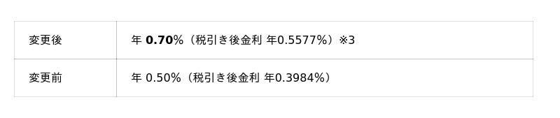 年0.70%へ引上げ、適用日は1月9日(金)より