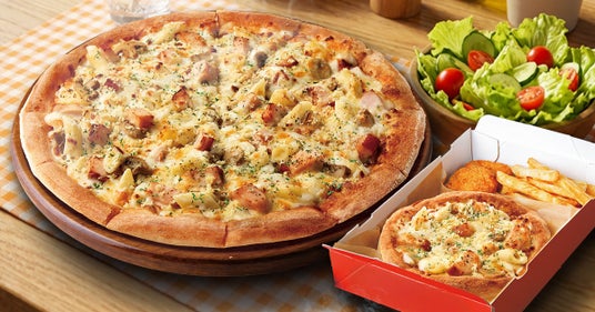 (チキンとマッシュルームのグラタンピザ/プルコギグラタンピザ/ペパロニクラシック/アスパラベーコーン)