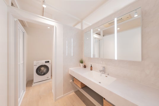 家事楽動線を体感できる、美しく機能的なサニタリー