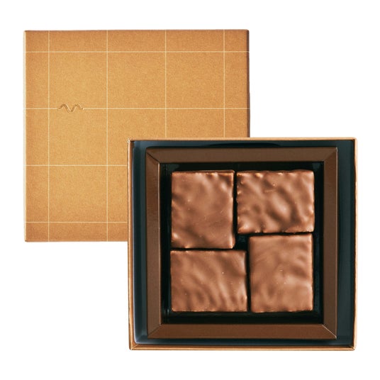 香ばしい食感のキャラメルナッツチョコレート。軽く煮詰めたキャラメルにローストしたアーモンドやくるみを加えてカリっと食感のヌガーに仕上げ、ミルクチョコレートをコーティングしました。一度食べるとクセになる魅惑のおいしさです。