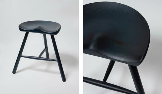 “日常に根づく名作スツールに、徳島・阿波で受け継がれてきた天然藍染めの職人技を重ねる。”