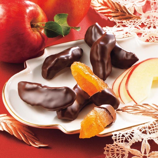 厳選した国産の糖漬けりんごを、甘さ控えめのチョコレートでコーティング。ひと口食べると、アップルブランデーがふんわりと香り、りんごのやさしい甘さとカカオの香り豊かなチョコレートがまろやかに調和します。りんごの食感と存在感のある味わいに満たされる、”プレミアム”なおいしさをぜひ。