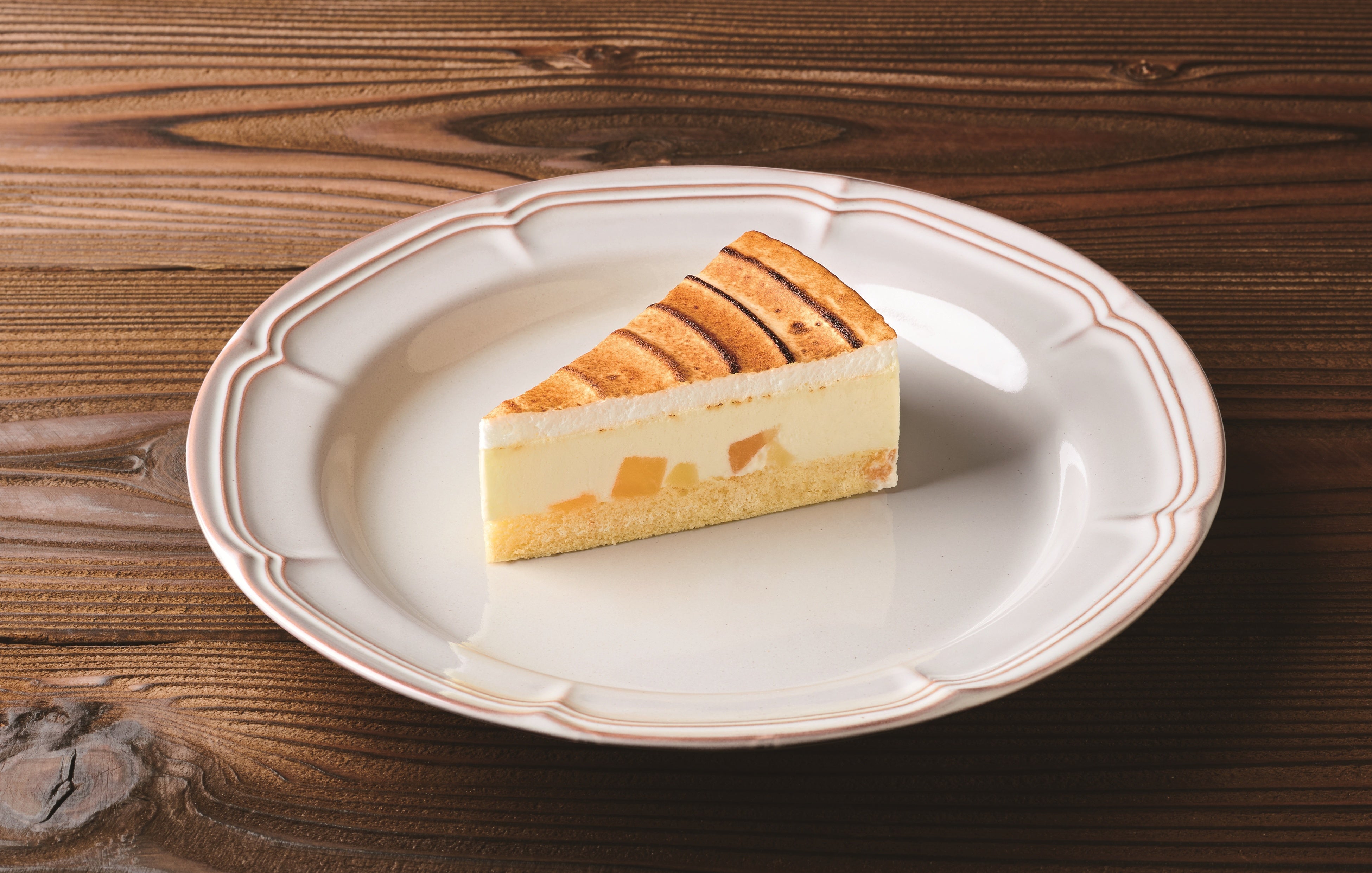 「りんごのシブーストケーキ」しっとりスポンジに角切りのりんご、カスタード、シブーストムース、メレンゲを重ねました。りんごの甘酸っぱさをぎゅっと閉じ込めた、贅沢な味わいの一品です。