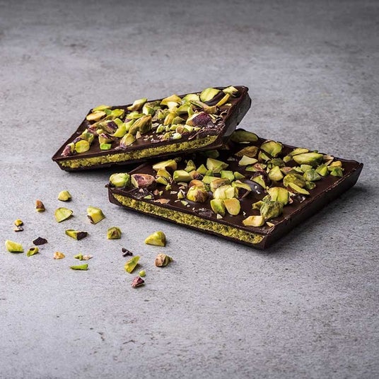 72%のベネズエラ産ビターチョコレートにスペイン産ピスタチオの自家製プラリネ入り。風味豊かなピスタチオをご堪能いただけます。