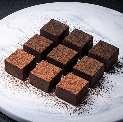 みずみずしい食感のゴールドレーズンをボルドー産の貴腐ワイン・ソーテルヌでマリネし、カカオ70%のビターチョコに包まれた一粒。ミルク、ホワイトの限定品に加えて、新作のライチをアソートに。さまざまなバリエーションをお楽しみください。