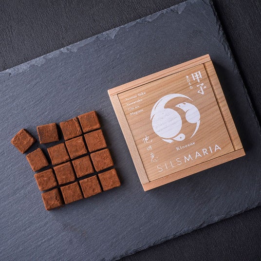 米と米麹のみで仕込まれたまろやかで優しい口当たりの中に、しっかりとしたコクを感じる純米酒「甲子 純米 やわらか 地の恵」。その豊かな旨味を、シルキーでなめらかな生チョコレートにのせて表現しました。