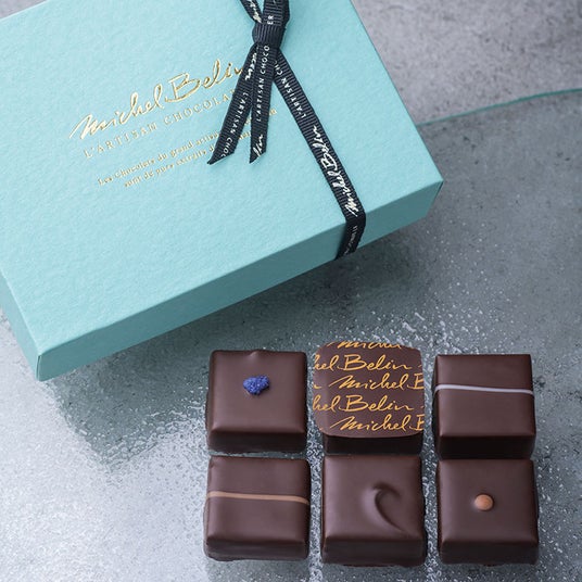 ミッシェル・ブラン氏の技と独創性の融合から生まれたボンボンショコラ。南フランスを象徴するすみれを使った「ヴィオレ アルビ」や、不朽の名作「メリッサ」、果実味あふれる「アブリコ」など6種のアソートです。