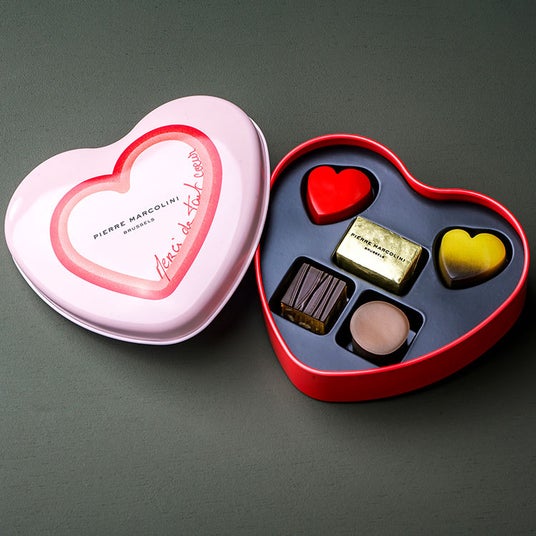 可愛いハート型のパッケージに、日本の柑橘を使った新フレーバー「クール ココロ アグリュム キャラメル」やゴロゴロとしたナッツの食感が楽しめる「プラリネ ピスターシュ」、定番人気の「プティ ビズー」など5種の詰め合わせです。