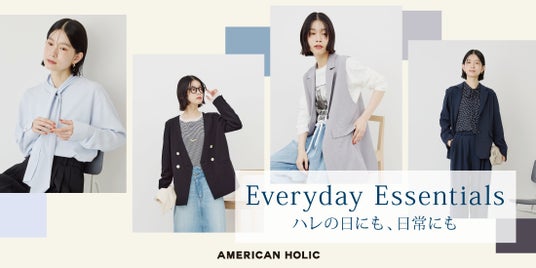 30代から40代のママ世代に支持されるAMERICAN HOLICから、オケージョンアイテムを取り揃えた新シリーズ「Everyday Essentials」が登場。「Everyday Essentials」では、ハレの日はもちろん、シーンを問わず“毎日に必要不可欠な服”として日常に寄り添い、かつ洗練されたアイテムを全13型展開いたします。