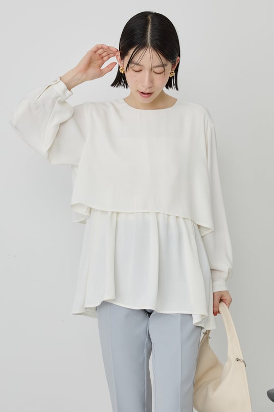 肩からケープのようにレイヤードされたデザインが軽やかなチュニックブラウス。