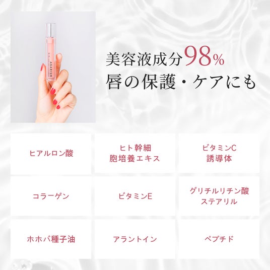 全体の約 98%が美容成分 で構成された、スキンケア発想のリッププランパー。