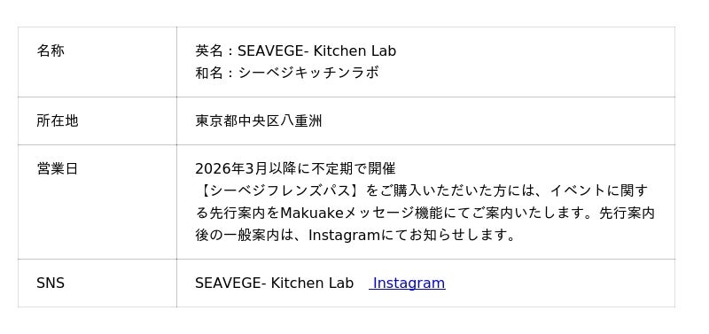 ※Makuakeの終了予定日は2026年2月27日ですが、Kitchen Labのイベント参加・先行予約ができる【シーベジフレンズパス】の購入期限は1月30日18:00までです