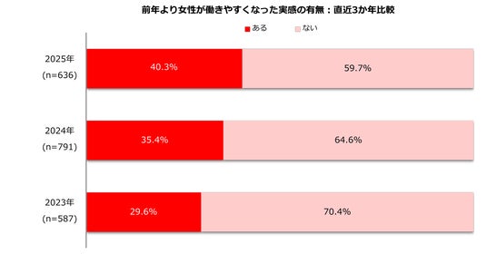 1.2025年は前年より女性が働きやすくなった実感「ある」40.3%/3か年比較