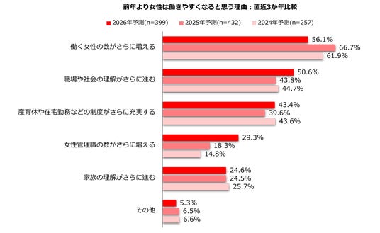 5.2026年は「女性が働きやすくなると思う」62.7%/3か年比較