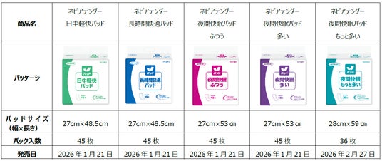 発売日:2026年1月21日(水)全国発売(※「夜間快眠パッド もっと多い」のみ2月27日(金)全国発売)