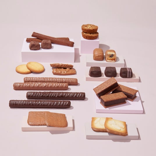 この時期はショコラをまとった秋冬限定の定番ラインナップが登場!「ポーム ド テール※」は数ヶ月洋酒に漬け込んだフルーツを使ったフルーツケーキとバタークリームを、マジパンとミルクチョコレートで包んだお菓子。「バトー ドゥ マカダミア」はナッツのゴロっとした食感と、チョコレートの上品な甘さで、もう1枚、また1枚と食べたくなるおいしさです。「プラン リュンヌ」はフランス語で“満月”の意味。ホロっとした食感と、くちどけのよいチョコレートのバランスをお楽しみいただけます。「ビエ オゥ ショコラオレ」はラングドシャー生地をふたつ折りにして、ミルクチョコレートでやさしく包んだクッキーです。贈り物にも、自分へのごほうびにも。この季節にお楽しみいただきたい、