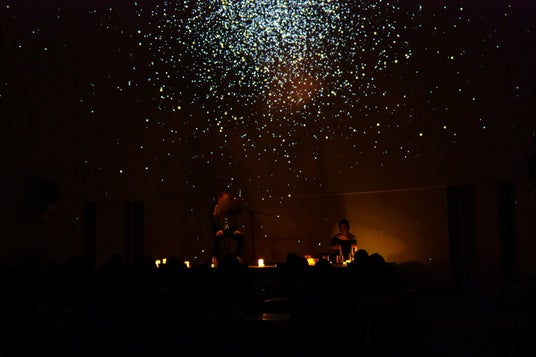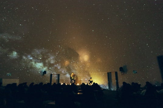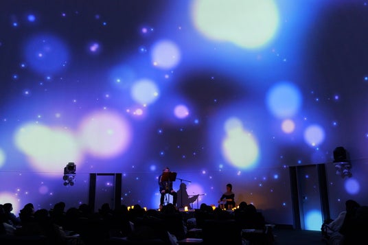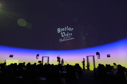 プラネタリウムに広がる星空映像と朗読・生演奏が融合した「Stellar Voice Meditation」の公演風景