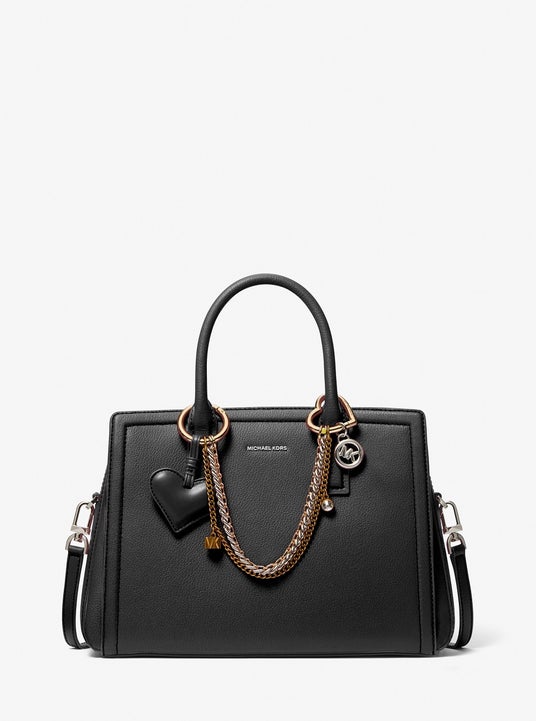 また、人気シリーズの「LAILA(レイラ)」は、レザーハートとミックスメタルの3連チェーンがあしらわれた華やかなチャームでアップデートしました。トップハンドルに取り付けられたこのチェーンチャームは取り外し可能で、気分に合わせて付け替えてムードを変えて持つこともできます。