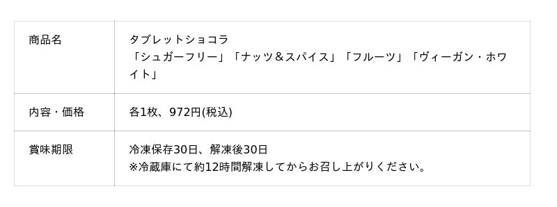 低糖質やヴィーガンなど、4種のタブレットチョコレートが新登場。表参道店のトレンドマークとも言える、ヘリンボーンの木目をイメージしたオリジナルチョコレートです。