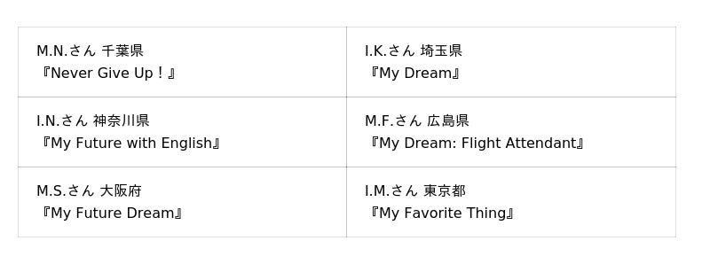 ■高校生以上の部:全6名(イニシャル/通学都道府県/スピーチテーマ/感想)