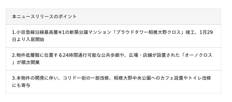 ⚫2023年9月15日リリース「小田急線沿線エリア最高層の分譲マンション「プラウドタワー相模大野クロス」発表」