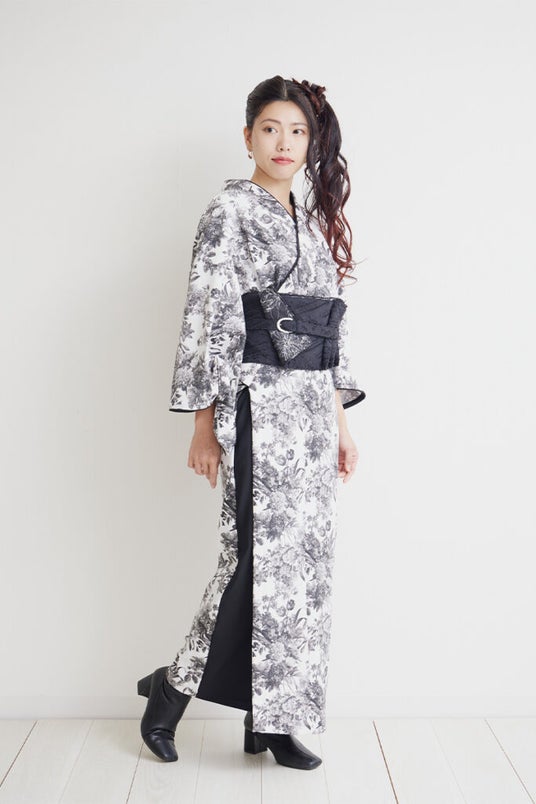 美しいシルエットを保ちつつ、簡単に着脱できる着付け不要のハイブリッド着物は、着付けの専門家によってデザインされました。ファスナーと帯ベルトだけで着脱が完結し、誰でも簡単に着ることができる新しい和装スタイルです。着物なのに着付け不要で、自宅で洗濯できるため取り扱いも簡単。縫製は安心の日本製です。走っても着崩れしにくく、おしゃれな着姿を楽しめます。オーダーメイドのため、生地の切替のカラー変更など細かいカスタマイズが可能なのもうれしいポイント。カジュアルからフォーマルまで、さまざまなシーンでご利用いただけます。