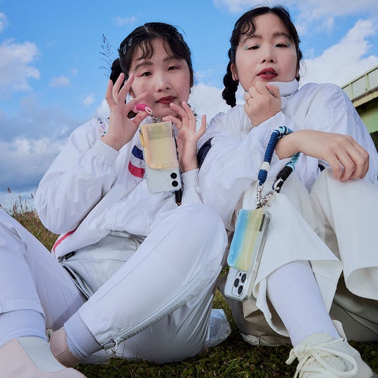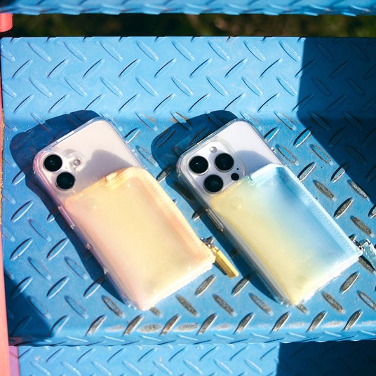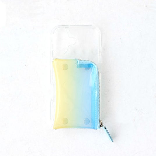 2026SSでは新たに3色登場。透明感あるPVCポケットに春夏らしさあるグラデーションデザインからは、柔らかな「pink yellow」と爽やかな「blue yellow」2色展開でご用意。また、シンプルなオール「clear」ポケットもラインナップ。付属のストラップホルダーを使用するとストラップやショルダー、トレンドのチャームも簡単にカスタム可能。 ケースにステッカーをはさみ込んだり、ポケット内を魅せる収納で遊んだり、自由に楽しめます。