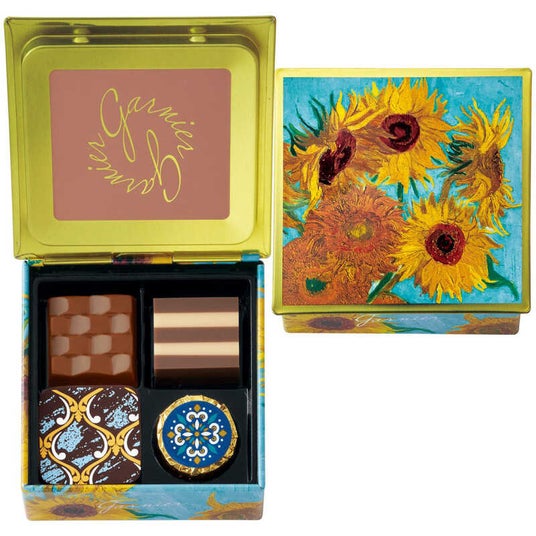 世界的な名画が描かれた宝石箱のようなフォルムの缶やハンドバッグ型の缶に、ひとつひとつ丁寧に仕上げた小粒のチョコレートを詰め合わせました。