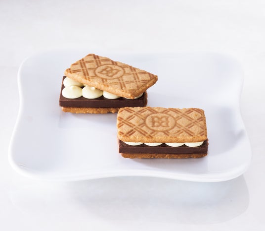 ミルク感たっぷりのジャムをバターが香るゴーフレットでサンド。カカオ本来の風味が広がる、フルーティなチョコ味をご用意しました。