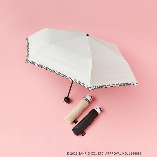 ハローキティのポイントデザインがかわいい晴雨兼用の折り畳み傘。