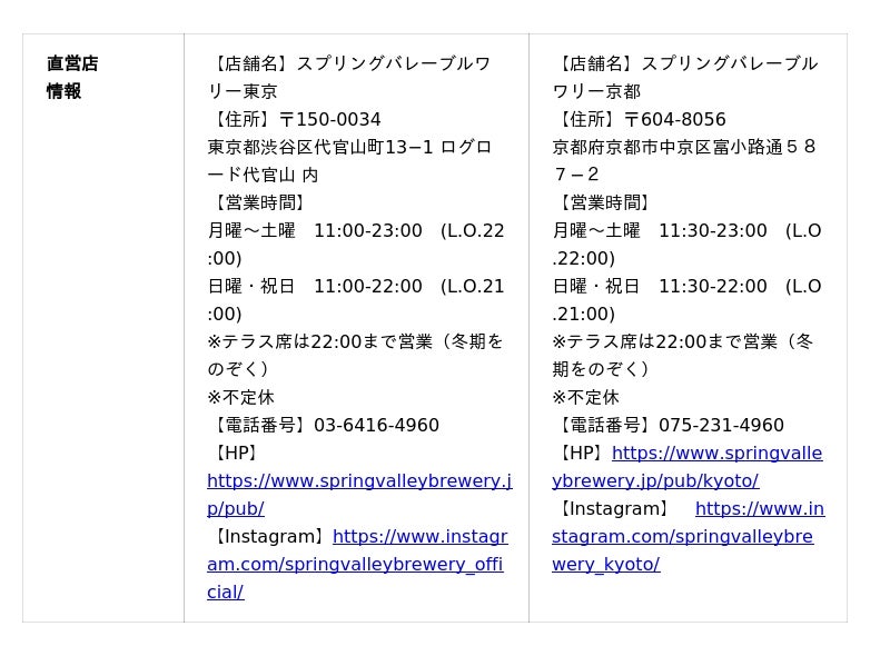 ■SPRING VALLEY BREWERY直営店