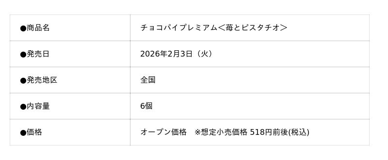 昨年ご好評いただいた「チョコパイプレミアム<苺とピスタチオ>」は、本年はさらなるご褒美気分をお届けしたいと、全てのパーツで見直しを図りました。