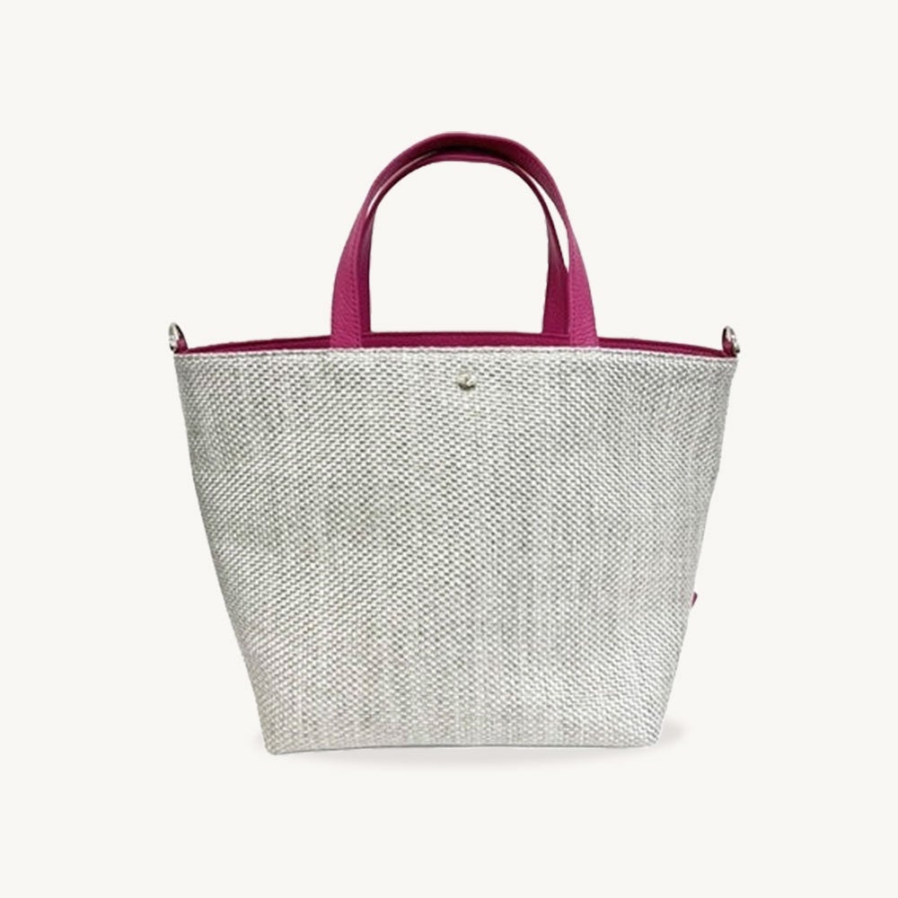 サックドプロムナード ラフィア調カゴ素材 トートバッグ Sサイズ(Dカン付き)(カラー:シルバー×ホットピンク)