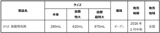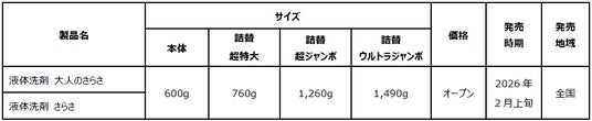 P&Gジャパン合同会社(本社:神戸市)は、無添加*¹衣料用洗剤・柔軟剤ブランド『さらさ』から、衣料用洗剤・食器用洗剤の2つのカテゴリから新製品を発売いたします。衣料用洗剤は、衣類と肌の摩擦を軽減し、大人の乾燥肌を優しく包み込む「衣料用洗剤 大人のさらさ」を新発売いたします。さらに、「さらさ 食器用洗剤」も新登場。デリケートな手肌を考えた処方なのに、食器用洗剤のジョイと共同開発で、油汚れもスッキリ落とします。「衣料用洗剤 大人のさらさ」は2026年2月上旬、「さらさ 食器用洗剤」は2026年2月中旬より全国で発売開始いたします。