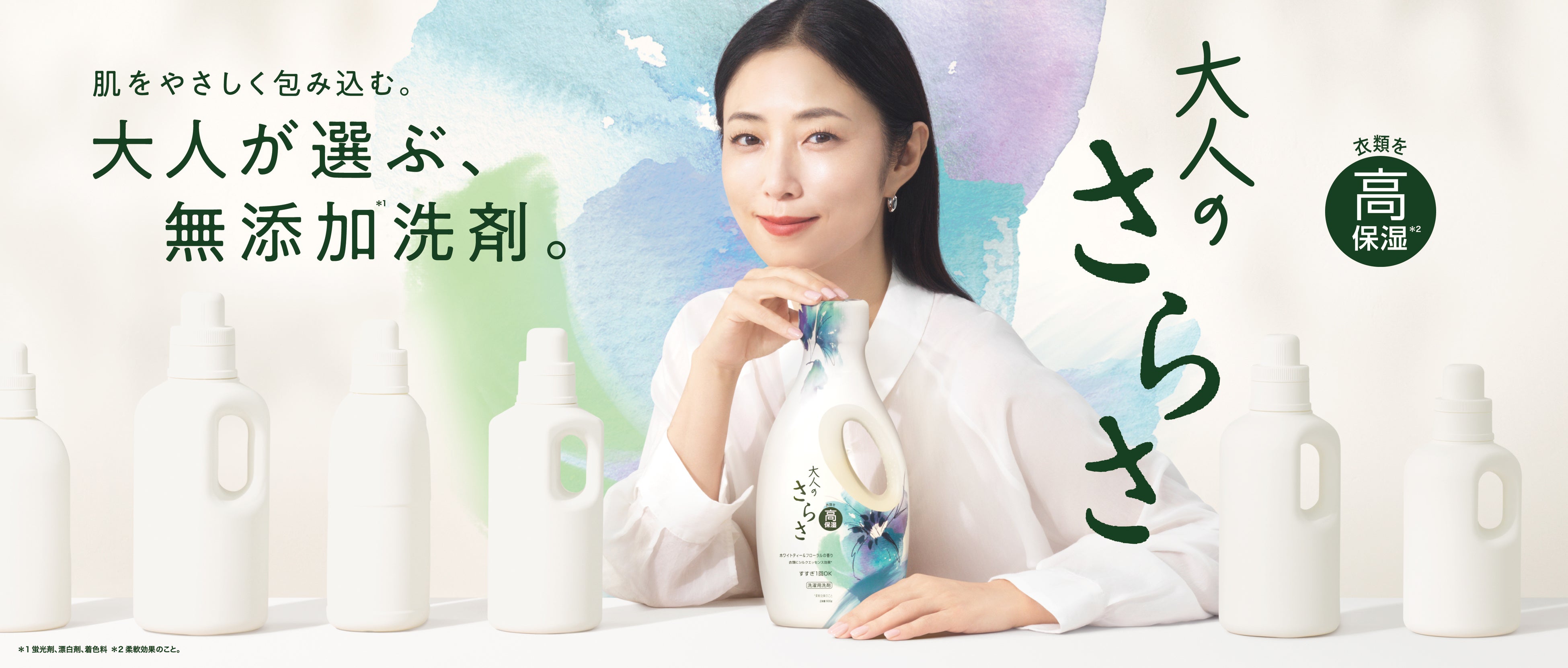 空調などの生活環境により、乾燥肌など肌悩みを抱える方は増えており、保湿クリームなどのケア製品を使う方も多くなってきています。そこで、無添加*¹衣料用洗剤・柔軟剤ブランド『さらさ』から大人の”乾燥肌”を優しく包み込む「衣料用洗剤 大人のさらさ」と「さらさ 食器用洗剤」を発売いたします。