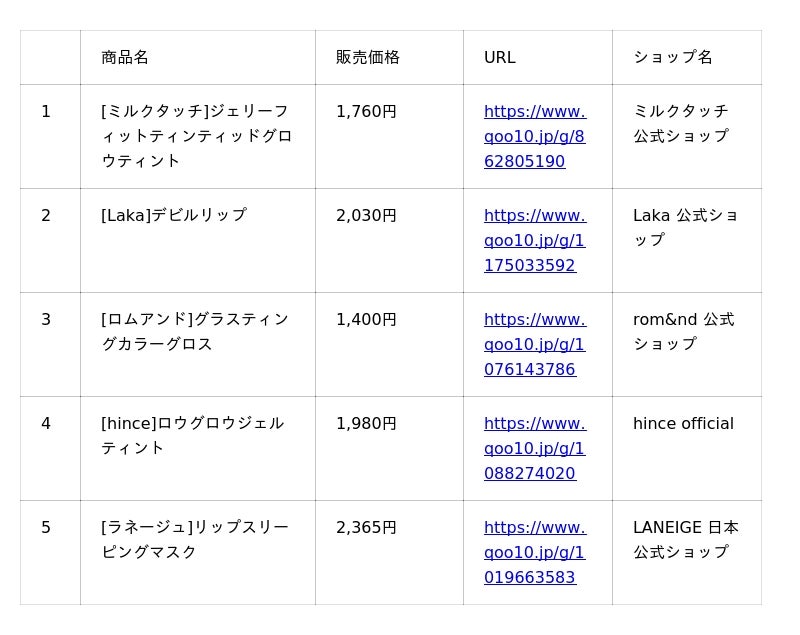インターネット総合ショッピングモール「Qoo10」を運営するeBay Japan合同会社(本社:東京都港区、代表取締役:グ ジャヒョン)は、Qoo10で人気のコスメカテゴリーの中から、『リップ』『アイシャドウ』『チーク』と、月替わりで1アイテムをピックアップした、月間販売数TOP5※をご紹介していきます。