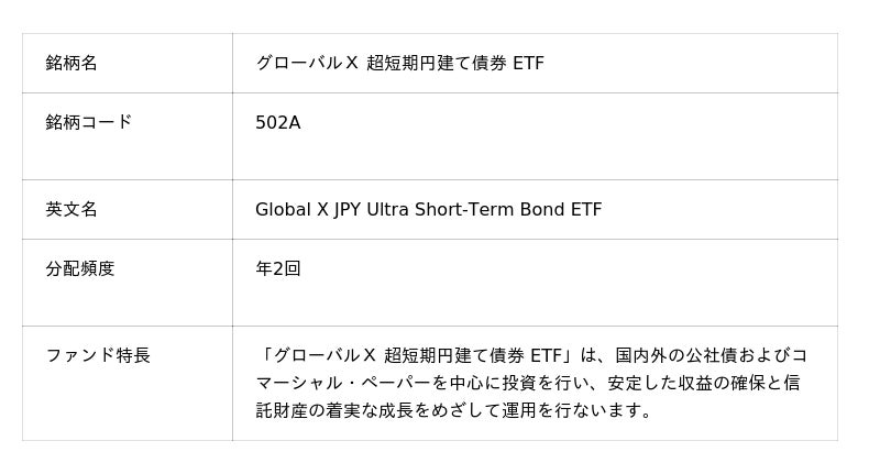 大和証券グループのGlobal X Japan株式会社(東京都千代田区、代表取締役社長:藤岡 智男、以下「当社」)は、本日1月29日に、東京証券取引所へ「グローバルX 超短期円建て債券 ETF」(銘柄コード:502A、以下「当ETF」)を新たに上場したことをお知らせします。