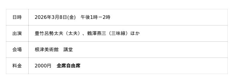 特別催事「素浄瑠璃の会 壺坂観音霊験記より」(有料)