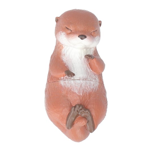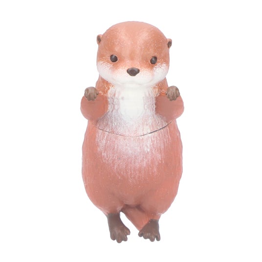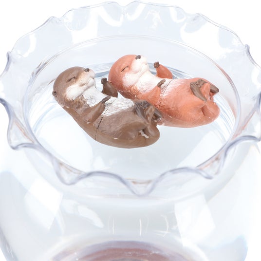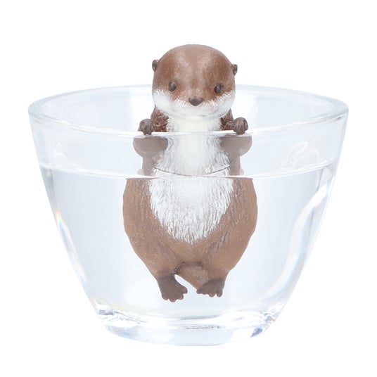 カワウソの赤ちゃん「ベビウソ」は、デフォルメ感を抑えたリアルな造形で、種類によって横浮きのものと縦浮きのものに分かれた全6種がラインアップ。水に浮かべると胴体や顔をひょっこり出す「上手にぷかぷかベビウソ」と仰向けに浮きながらすやすや眠る「すやすやベビウソ」は横浮き、「ぷかぷかつかまり練習ベビウソ」は手で何かをつかんでいる様子を表現しており、コップや水槽などのふちに引っかけるとへりにつかまって泳ぐ練習中のような姿になる縦浮きです。