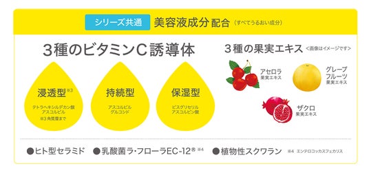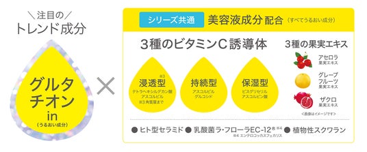 ■ハレバレシリーズ共通 3種のビタミンC誘導体* にグルタチオン(うるおい成分)を配合