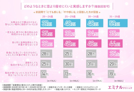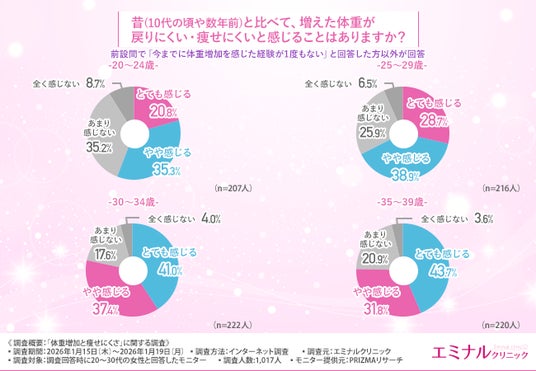 そこで今回、「エミナルクリニック」は、20~30代の女性を対象に、「体重増加と痩せにくさ」に関する調査を実施しました。