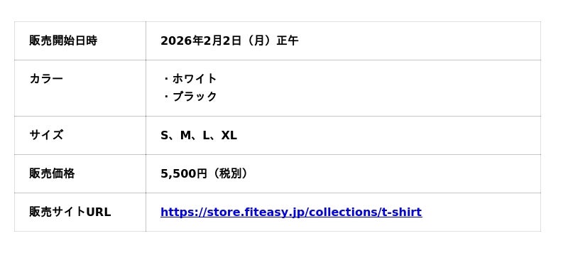 全国にアミューズメントフィットネスクラブを展開するフィットイージー株式会社(本社:岐阜市、以下:当社)は、「動ける日常を、もっと軽く」をコンセプトにオリジナルアパレル(Tシャツ)を開発し、2026年2月2日(月)正午より販売開始いたします。