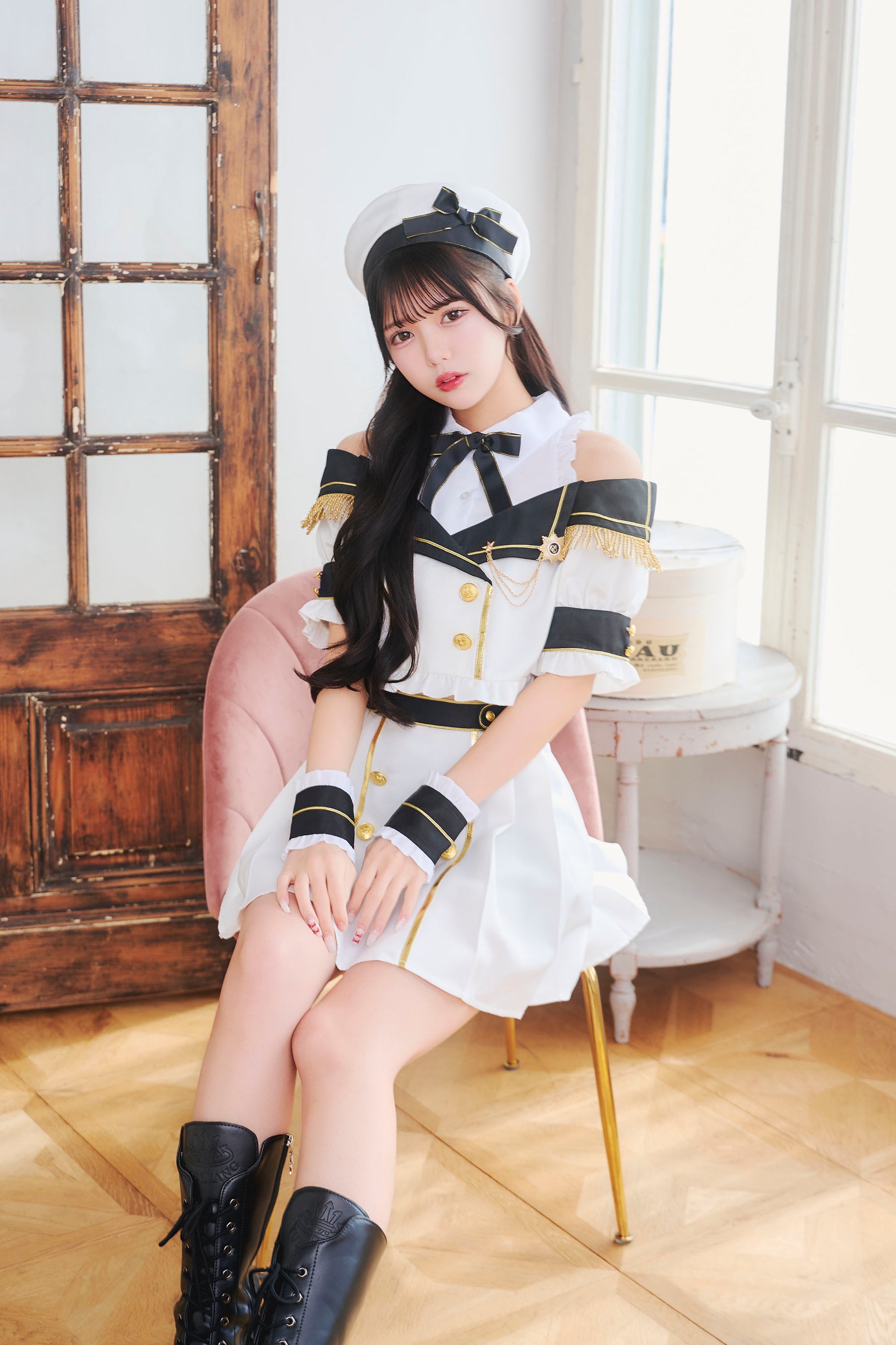 マリンテイストを取り入れた白い制服は、爽やかな優等生風。ゴールドのタッセルやチャームが上品なアクセントになり、高級感を演出します。