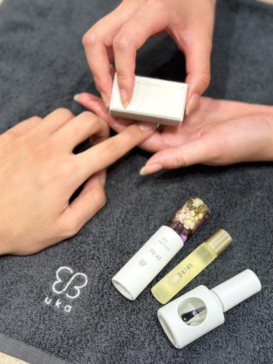 ネイリストがネイルケアを、ukaスタッフが頭皮診断を同時に行うことで、ヘアとネイルを同時に施術するクロス施術を体験いただけます。