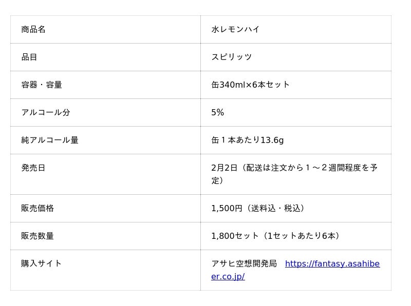 アサヒビール株式会社(本社 東京、社長 松山一雄)は、『水レモンハイ』を新商品テスト販売サイト「アサヒ空想開発局」で2月2日から数量限定で発売します。