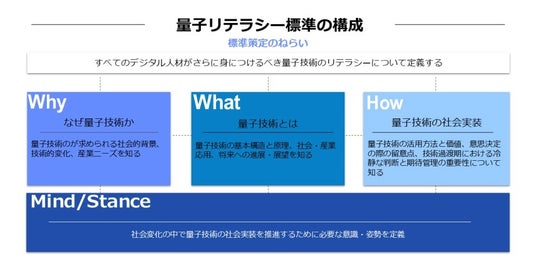 – DSS‑L(DXリテラシー標準)と連携し、Why / What / How / Mind‑Stanceの4軸で整理。量子技術の社会的背景から基本原理、社会実装、必要な姿勢までを網羅。