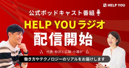 公式ポッドキャスト番組「HELP YOUラジオ」配信開始~代表・秋沢と広報・小澤が語る「人×テクノロジー」で人手不足に向き合う現場のリアル~