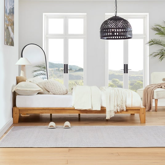Kana Bedは、伝統的な木工技法である「木組み(ほぞ組み)」を採用した木製ベッドフレームです。