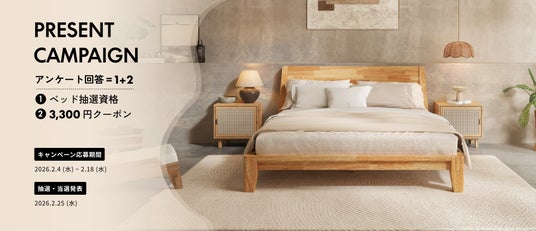 Flexispot Japan株式会社(本社:埼玉県入間郡、代表取締役:斉冰白、以下「FlexiSpot」)は、「Kana Bed 無料抽選キャンペーン」を開催いたします。2026年2月4日(水)~2月18日(水)の期間中、アンケートにご回答いただいた方を対象に、抽選で賞品をプレゼントいたします。あわせて、Kana Bedの新色「ウォルナット」の予約販売を開始し、期間限定で15%OFFの特別価格にてご提供いたします。