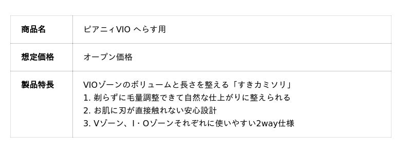 毛量を自然に整えたい方、つるつるに剃りたい方、それぞれの好みの仕上がりに合わせて選べる「ピアニィVIO」シリーズとして、より充実したラインナップへと生まれ変わります。
